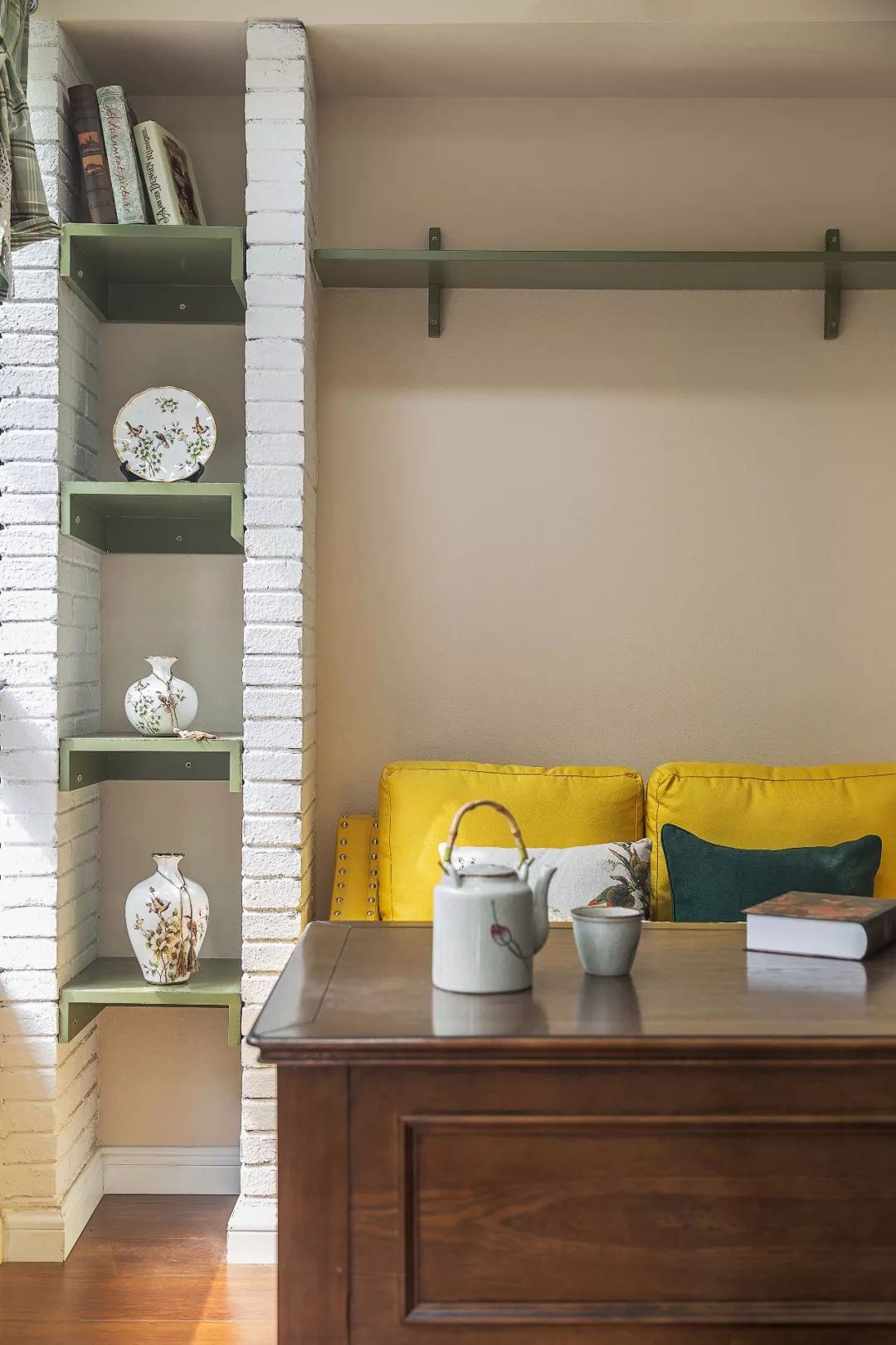 白色墻磚有一種文藝氣息,搭配綠色的隔板,就變成了書架,擺上書籍或裝飾品,放上一張書桌,一把椅子,一個沙發,這樣的小書房,浪漫又唯美,在這呆一天也不會膩吧!