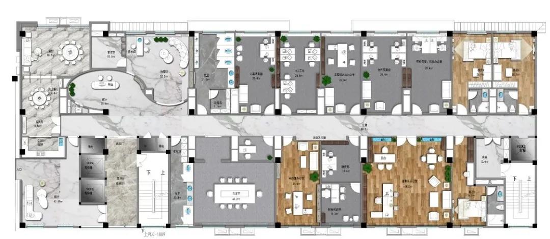 The owner wants sedate and serious office atmosphere at the beginning, but after seeing the design scheme that we give, feel pure and fresh and lively office environment, can make the person's mood becomes more comfortable, the efficiency of the office also can improve subsequently. Based on the professionalism and innovation we showed when we designed the residence for him for the first time, we readily accepted our subversive design, hoping to bring the company and employees a new office experience and enterprise atmosphere.