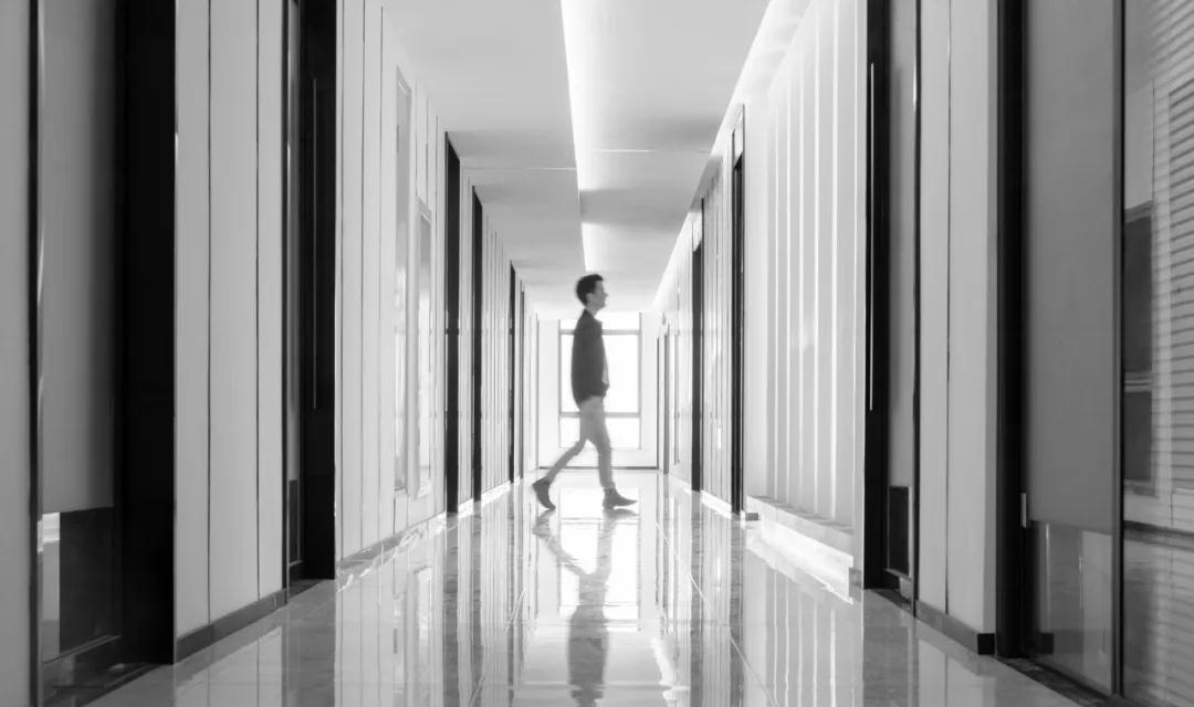 From the ceiling of the gap diffuse out of the warm light, invisible and powerful division out of a corridor. At both ends of the corridor, there are bright Windows to introduce fresh air and natural light. In the space of asymmetrical display of a line, moving a quiet, is the wisdom of the design.