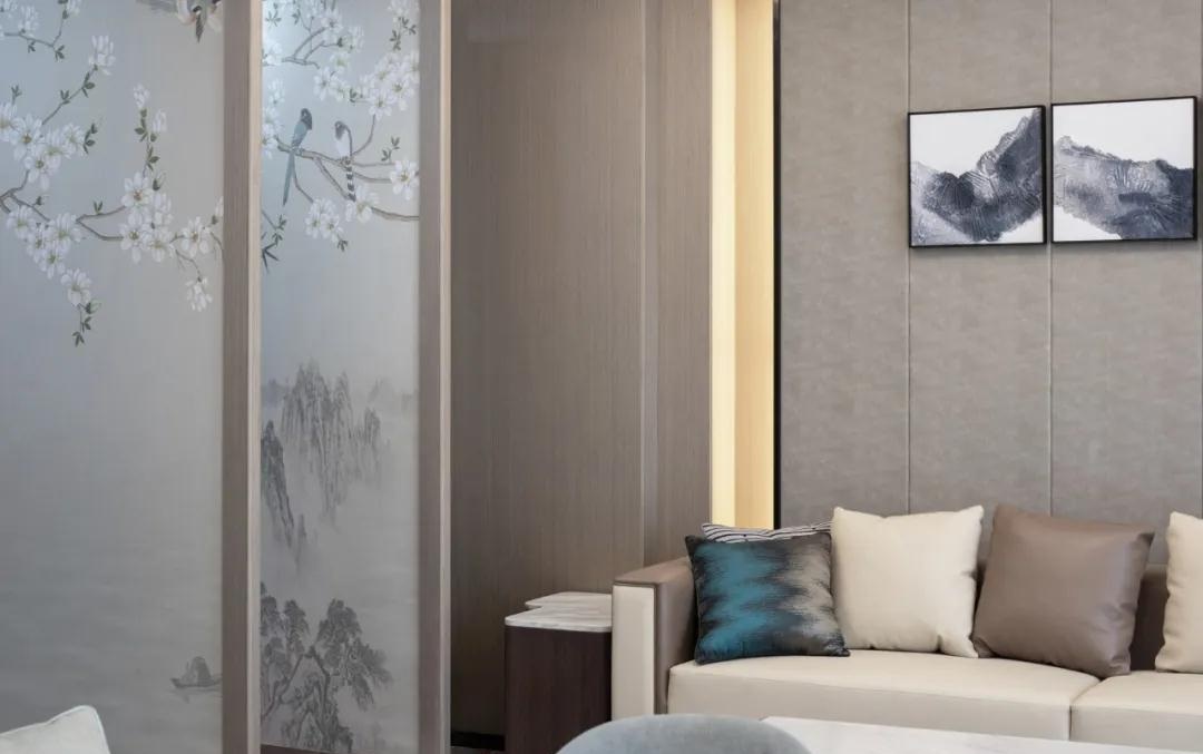 The blue on the painting is the small town landscape, gentle and cordial; The blue of the curtain is mist collect azure, inside collect and implicative. The reception room that is wrapped gently by two kinds of blue lives, the sofa that has contemporary feeling alone and the hold pillow that contains ethical amorous feelings implicitly, create a comfortable rest space.