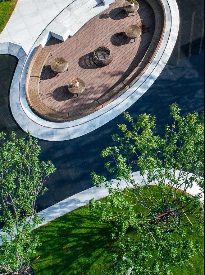 一般下沉式庭院在建造時就已經匹配好地面的排水系統了。有些樓盤的建筑地形較高,所以半下沉式的庭院,其標高略高于市政管網,或庭院周圍有地勢較低的溪流、河流等,可以利用重力,通過排水溝、集水管道,將庭院的水排入其中。如果下沉式庭院的地勢低于市政管網,需在庭院內設置集水坑,先讓水流入集水坑中,再通過水泵加壓排出,這類庭院的排水性較差。業主在庭院設計時可以添加滲井、雨水調節池,或者直接設計水景,來調節降水。