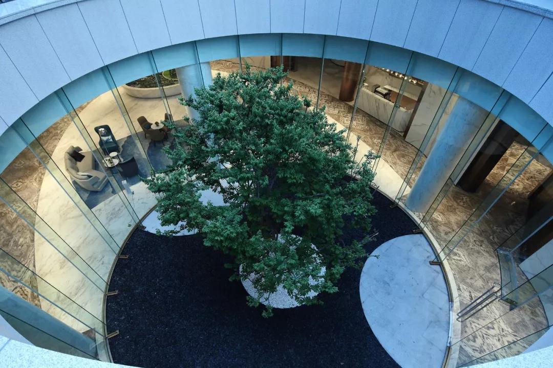 對于這種下沉式庭院,在做頂面設計時,最好設置排水措施,讓雨水排到室外,從而減輕下沉式庭院的排水壓力。透明玻璃處也要做防水處理,以防頂部滲漏。