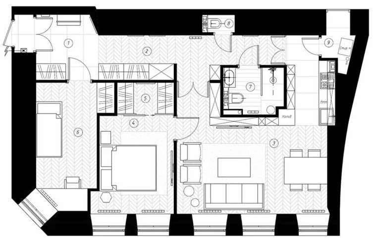 由于進(jìn)深較短,設(shè)計(jì)師采用平行布局