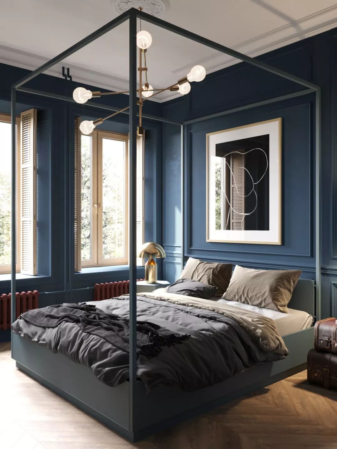 傘形金屬臺(tái)燈與上方吊燈遙相呼應(yīng)