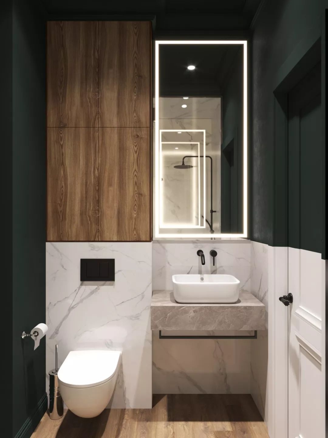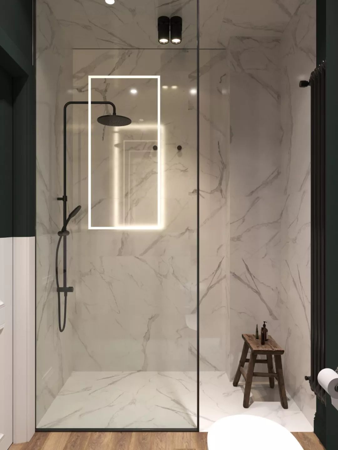 搭配矩形鏡燈和純黑花灑,未來(lái)感十足