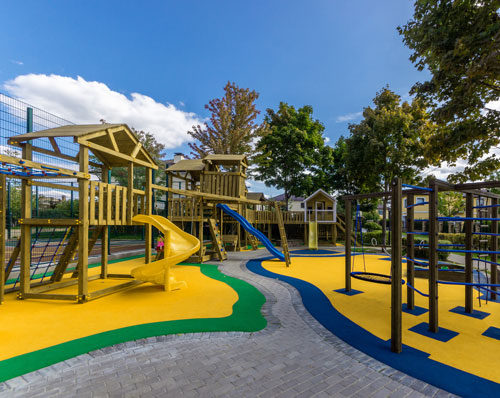 For an instantly welcoming and cheerful appearance, why not invest in bold color schemes for educational exteriors and child-friendly environments? Play areas are given a colorful makeover with path-finding shapes in Dandy Lion, Florida Waters, and Aqueous.