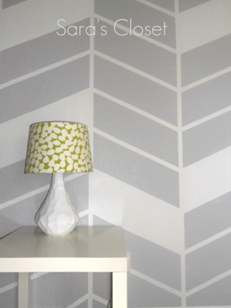 This Herringbone wall design looks expensive and chic, but really all it took was some painter’s tape and a couple coats of paint. Sara at Sara’s Closet explains how she created the design on her blog.. |