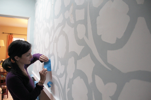 Morgan over at Pepper Design Blog also went free-form with her design, creating shapes out of painter’s tape and then applying them organically to her hallway wall. We love that she applied chalkboard paint below the chair-rail of her design!